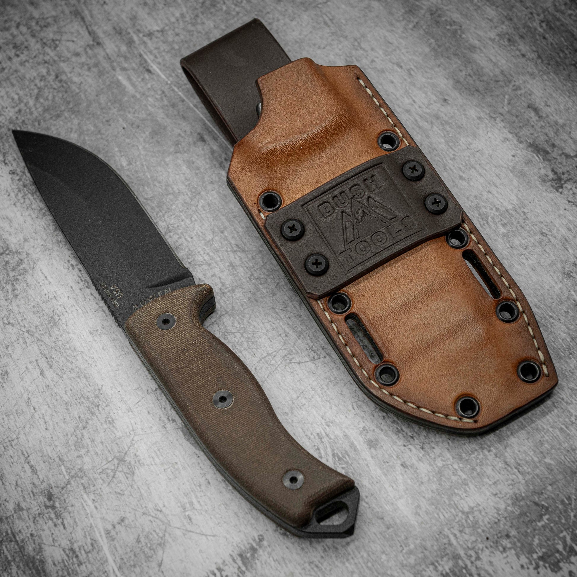 - A leather strip, on which the BUSH TOOLS logo is deeply marked